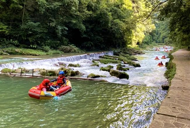 “大家都说高过河一年四季瀑声不断,蝉鸟唱和,被誉为一条会唱歌的河,其实我觉得大家的欢笑和尖叫也是歌声的一部分。”彭晨打趣道,景区内狂野的不仅是漂流还有尖叫,满河道的尖叫声回荡山谷,足以瞬间浇灭夏日的炎热。