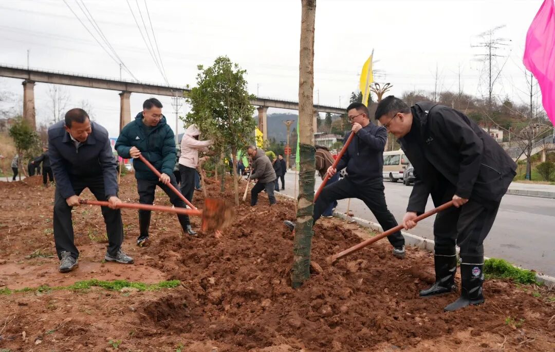 植树现场,杨琼、黄朝银、王冬梅等县领导拿上铁锹、锄头等工具,和广大干部群众一起投入到紧张有序的植树活动中。大家精神饱满、分工协作,挥锹铲土、扶苗正干,每一道工序有条不紊、一丝不苟,共同植下一棵棵绿色之树、希望之树。