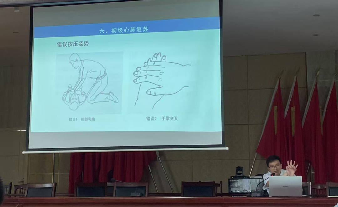 培训现场,金堡镇卫生院的医护人员结合农村地区常见安全风险,围绕溺水现场急救、中暑应急处置、烧伤初步处理、中毒快速应对、初级心肺复苏等核心内容展开深入讲解。医护人员既从理论层面科普急救原则,又通过模拟演示还原现场操作细节,大到溺水者控水、心肺复苏的标准步骤,小到烧伤后冷却处理的时长控制、中毒后的催吐禁忌,均以通俗易懂的语言配合分解图片进行细致说明,让参训人员快速掌握关键技能。