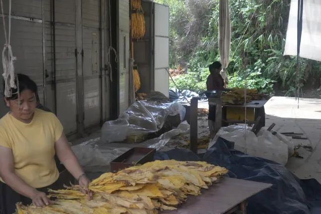 烤房内经过高温烘烤后的烟叶色泽金黄,随后被送到通风良好、光线充足的分级场地。经验老到的分级员们神情专注,根据叶片的长短、大小、颜色、油分、成熟度等标准,对烟叶进行细致入微的分级、筛选和分类。每一个动作都关乎最终的收益,村民们格外认真,力求从每片烟叶中“优中选优”。