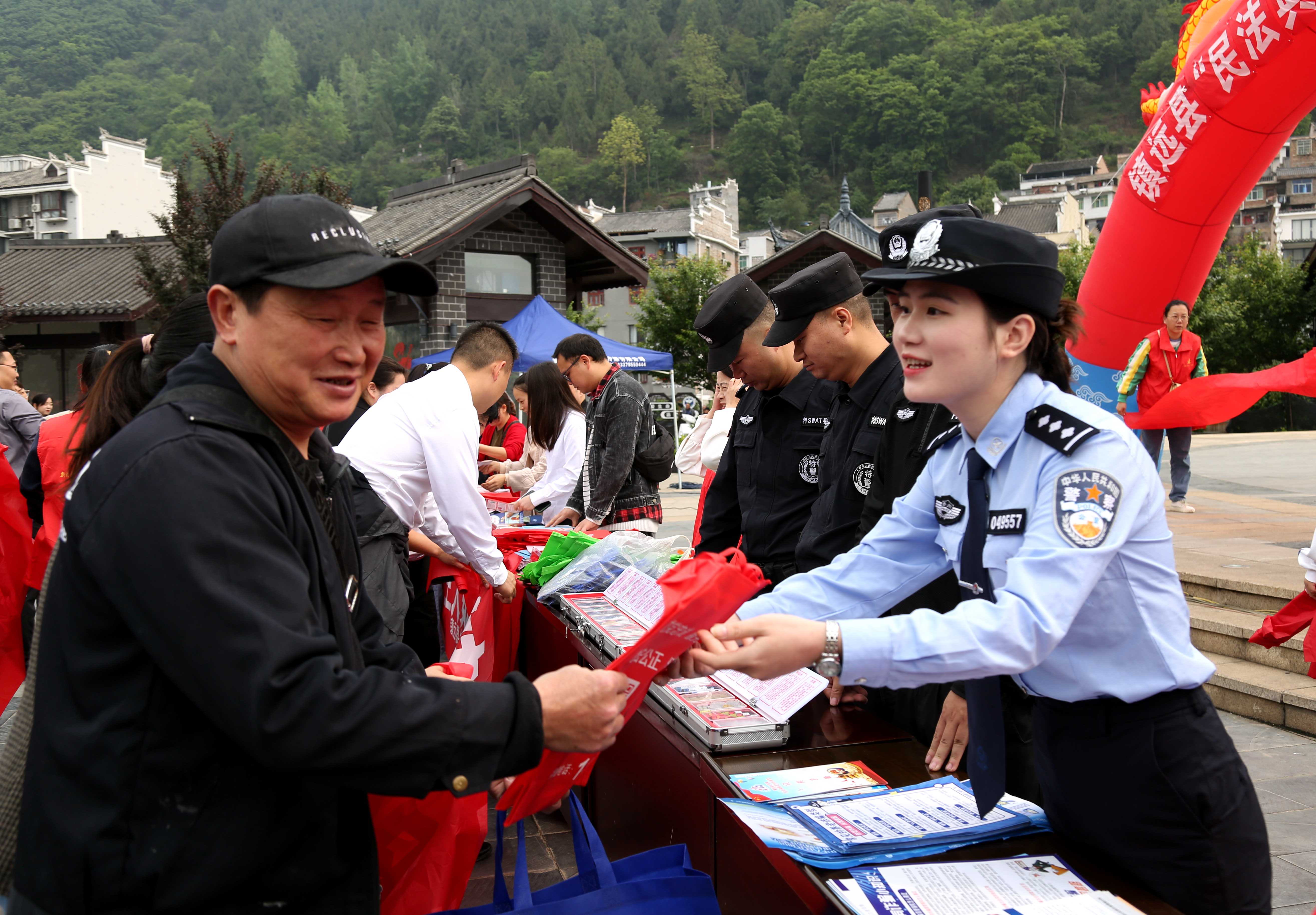 在活动现场,镇远县公安局与法院、检察院、司法局等单位结合各自业务知识和法律法规,落实“谁执法谁普法”责任制,通过悬挂宣传横幅、警车巡游、摆放展板、发放宣传资料、现场法律咨询等多种形式,认真宣传各类法律法规、普及法律常识,引导群众通过正确途径解决纠纷,依法行使权利、依法表达合理利益诉求等,有针对性地提高群众遵法、学法、守法、用法的意识。