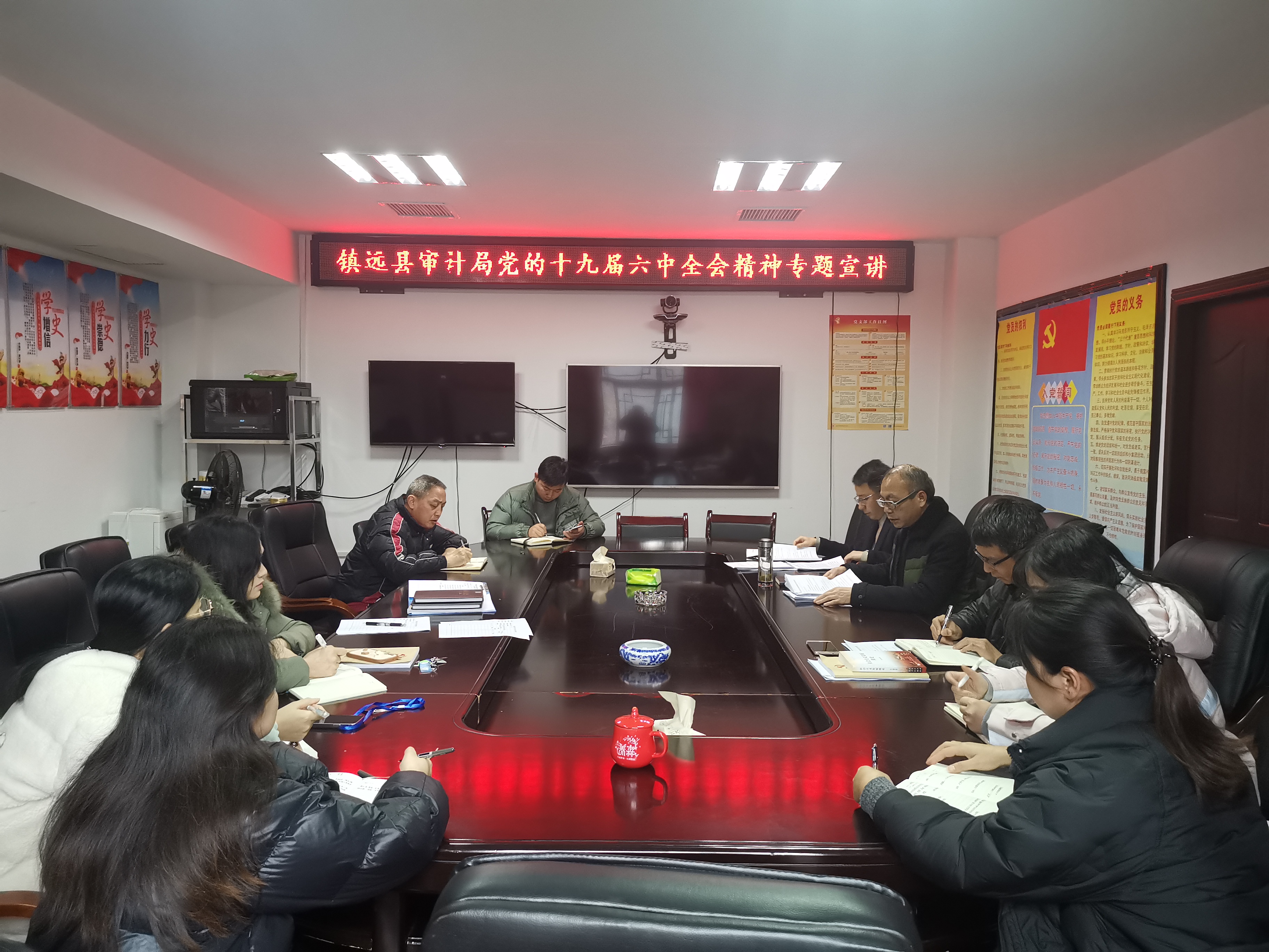 为深入学习宣传贯彻党的十九届六中全会精神,2022年1月10日上午,镇远县审计局党组书记、局长聂敦峰同志在局机关开展党的十九届六中全会精神专题宣讲,镇远县审计局全体党员干部参加了宣讲会。