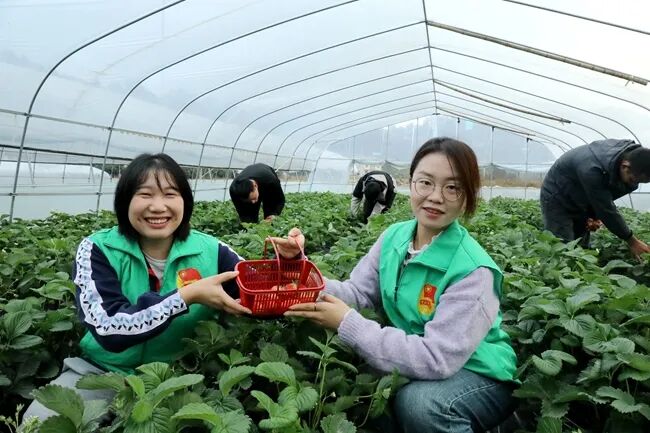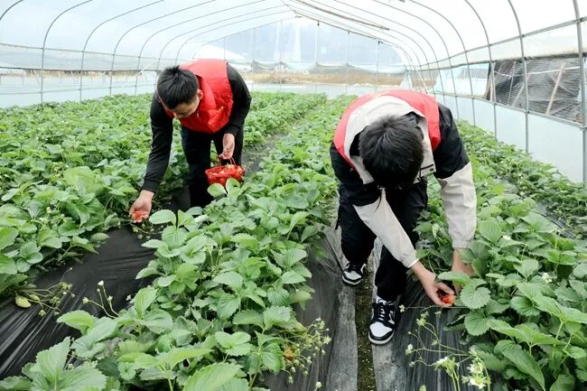 近日,笔者走进羊场镇草莓基地,空气中散发着淡淡的果香。一排排整齐的草莓植株,绿意盎然,红绿相间的草莓宛如一个个小灯笼点缀在绿叶间,个头圆润饱满,甚是喜人。果农们穿梭其中,干劲十足,熟练地挑选、采摘,一个个色泽鲜美、外形饱满的草莓很快被装入框内。“我就是这附近的人,走五分钟路就到这里了,一天能赚个一百来块钱,不仅能赚钱还能带孙女。”羊场村陈秀英开心地说道。同时,在另一个大棚内,红彤彤的草莓和“红马甲”交相辉映,志愿者穿着红马甲,干劲十足,忙碌的身影成为田间地头一道亮丽的风景,切实解决产业丰收时节缺少劳动力等问题,为乡村振兴增添了温暖力量。“我们基地目前发展了14棚草莓,分批移栽8万余棵草莓苗,今天草莓采摘效果很好,感谢党委政府和志愿助农队来帮忙,过几天将迎来大丰收,我们会做好贴心服务,让前来打卡采摘草莓的游客有个好的体验。”草莓种植基地负责人龙家丰说道。据了解,在镇党委政府的关心和支持下,今年草莓长势很好,共种植90余亩草莓,品种多样,分为巧克力、奶油、白草莓等3种口味,一亩产值约1万元左右,实现了周边群众在家门口就业,增加了收入,改善了生活条件,累计带动就业200余人。一直以来,羊场镇创新推出“党建+”模式,在壮大村级产业的同时充分发挥党员示范带头作用,用实际行动为群众“办实事、办好事、解难事”。下一步,羊场镇将不断优化农业产业结构,按照乡村振兴战略,结合自身优势,在果蔬产业上做文章,打造集近郊旅游、生态观光、休闲采摘于一体的农旅产业,切实让更多“果蔬产业”多点开花,带动农业增效、农民增收。同时,将继续结合群众实际需求,持续开展更多助农志愿服务活动,助力乡村振兴赋能增效。