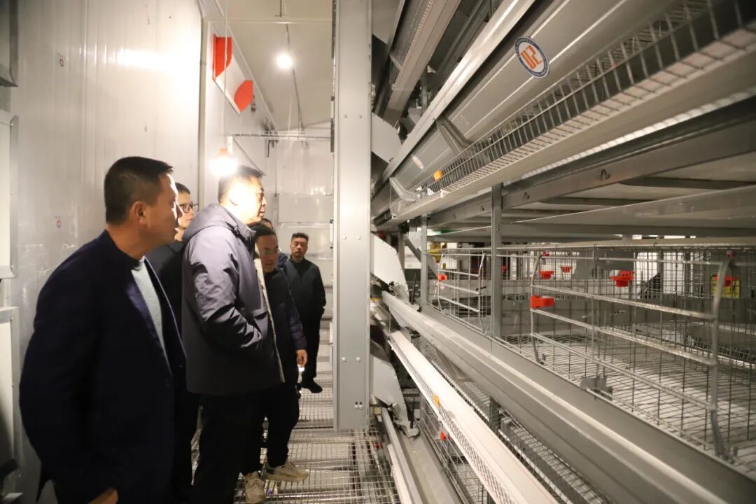 签约仪式结束后,杨军一行到报京乡标准化蛋鸡养殖场项目查看基础建设、设施设备等情况。