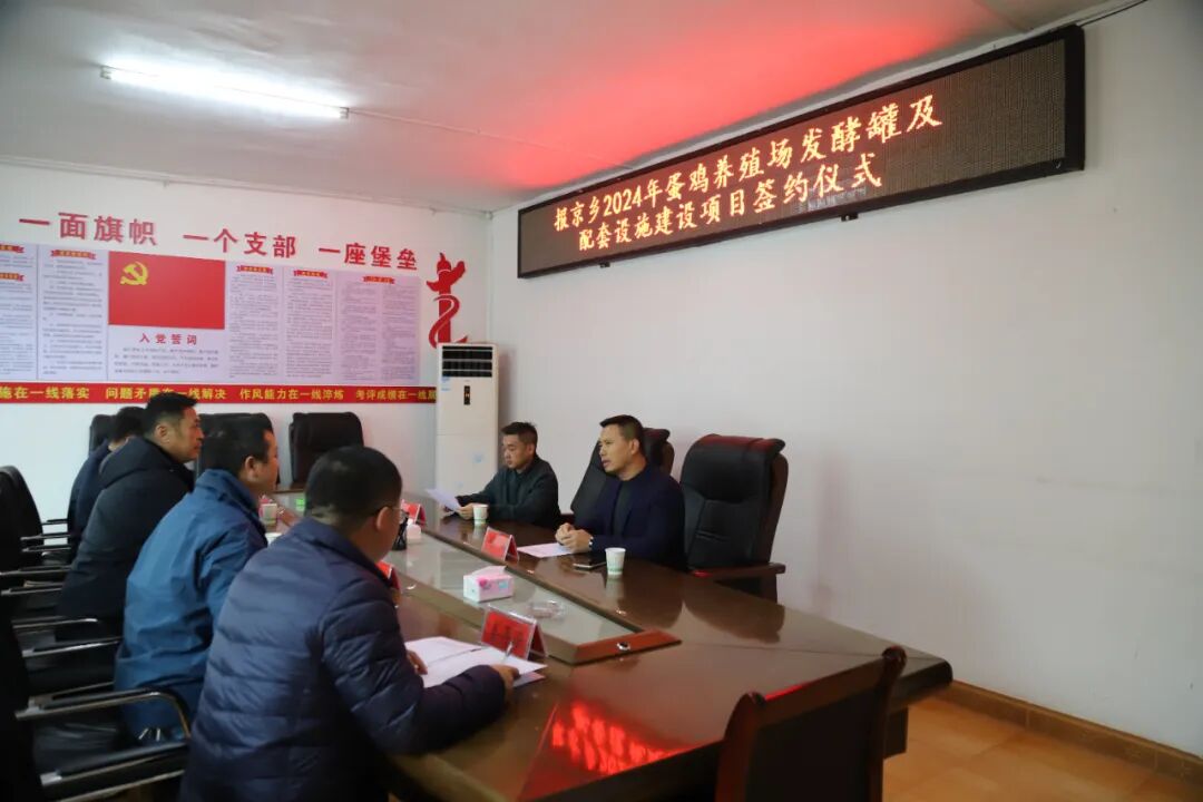 12月9日,报京乡人民政府与黔粤通农业发展有限公司签订《报京乡蛋鸡场固定资产(2024年新建发酵罐及配套设施)承包合同》,县委常委、县人民政府副县长杨军,县人大常委会副主任高邦超到场见证,报京乡相关负责同志参加。